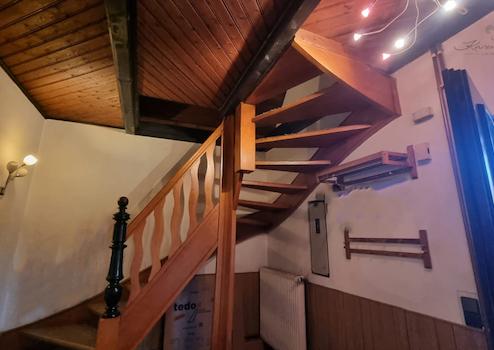 Durch die Eingangstür gelangen Sie in eine einladende große Diele, von dieser gelangt man in den sehr schön offenen Wohn- und Essbereich. Dieser wird dominiert von dem zentral gemauerten offenem Kamin. Eine Küche und ein Bad vervollständigen das Wohnangebot im Erdgeschoss. Von der Küche gelangen Sie über eine Bodenluke und eine Holztreppe in den Vorratsraum bzw. Heizungsraum. Hier ist genug Platz zur Verfügung, zum Beispiel für eine neue Gasheizung.