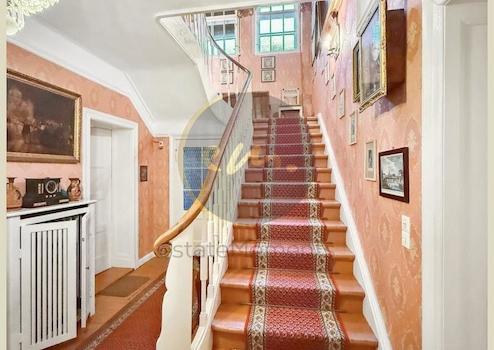 Die Villa, die sich seit Errichtung in Familienbesitzt befindet, befindet sich ich in einem außergewöhnlich gut erhaltenen Originalzustand, was in dieser Form selten zu finden ist. Insbesondere: Offener Treppenaufgang mit bequemer Steigung, Holz-Doppelkastenfenster mit Messinggriffen (teilweise bereits erneuert), stilvolle Holz-Kassettentüren mit Messing-Türbeschlägen sowie klassische gusseiserne Heizkörper prägen das Interieur und verleihen dem Haus seinen unverwechselbaren Charme. Ergänzt wird dieser durch den originalen Parkett- und Dielenboden, der perfekt mit der klassischen Architektur harmoniert.