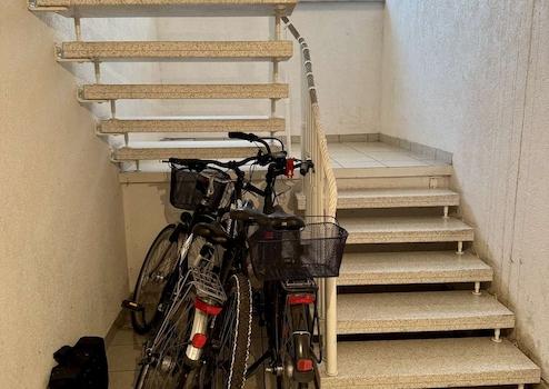 Zur Wohnung gehört ein Keller, der zusätzlichen Stauraum bietet. Ein Stellplatz und ein Fahrradabstellplatz sind ebenfalls vorhanden, was den Alltag erleichtert.