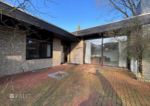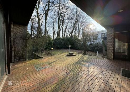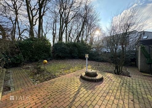 Die Terrasse bietet einen ruhigen Rückzugsort mit Blick auf den gepflegten Garten. Dieser lädt zum Verweilen ein und bietet viel Platz für Freizeitaktivitäten im Freien. Der Garten bietet genügend Raum für individuelle Gestaltungsideen.