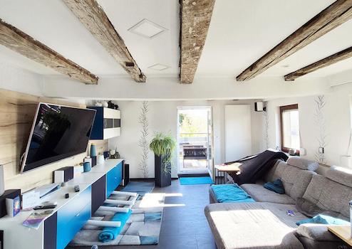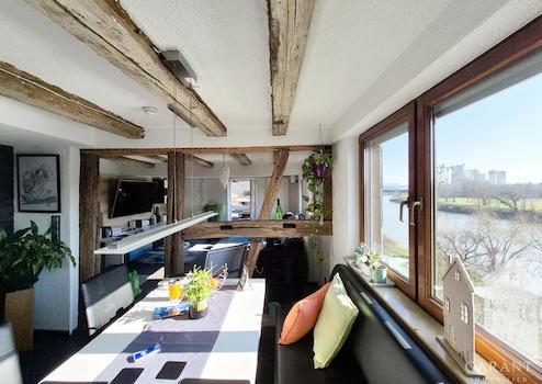 Diesen Maisonette-Traum müssen Sie gesehen haben! Einziehen und Wohlfühlen! Auf über 125 qm entfaltet sich eine modernisierte, gut durchdachte 5 Zimmer-Wohnung in wunderschöner Aussichtslage am Neckar mit Blick auf Bad Wimpfen. Das Herzstück bildet der lichtdurchflutete, offene Wohn-/Essbereich mit stylischer, neuwertiger Küche. Die freigelegten, alt ehrwürdigen Holzbalken schaffen einen gelungenen Kontrast zum modernen Wohnambiente. Der Kaminofen spendet im Winter wohlige Wärme. Neben der Küche befindet sich ein großes Durchgangszimmer, welches als Vorrats- bzw. Abstellzimmer dienen kann. Daran schließt sich das 21 qm große Büro an, das sich ideal als Homeoffice anbietet. Das absolute Highlight ist der 15 qm große, neu angebaute Balkon, auf dem Sie einen einzigartigen Ausblick auf den Neckar und Bad Wimpfen genießen können und der Platz genug bietet, um mit Familie und Freunden zu grillen. Genießen Sie hier am Morgen eine schöne Tasse Kaffee und beobachten Sie das Erwachen der Natur.