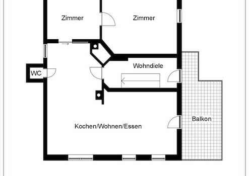 Die Wohnung befindet sich in einem 2-Parteienhaus, wird von den Eigentümern selbst verwaltet und ist von außen renovierungsbedürftig.