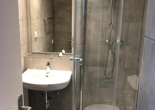 Das Badezimmer mit Dusche ist ebenfalls neu.