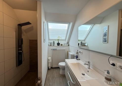 Der lichtdurchflutete Wohn- und Essbereich bietet genug Platz für Familienfeste. Mit vier Schlafzimmern und einem geräumigen Büro hat man viele Gestaltungsmöglichkeiten. Die Wohnung hat zwei Badezimmer, das eine wurde 2021 erneuert und bietet neben der ebenerdigen Dusche auch ein Pissoir. 2018 wurde die moderne Einbauküche mit reichlich Platz eingebaut. Die Küche und die voll funktionsfähigen Geräte sind im Kaufpreis bereits enthalten. Der Zugang zur Bühne befindet sich in der Dachgeschoss-Wohnung. Dort befindet sich viel Stauraum und bisher ungenutzte Fläche.