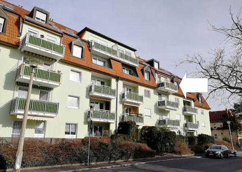 Gemütliche 2-Raumwohnung im Dachgeschoss mit Balkon und Tiefgaragenplatz in 1A-Wohnlage in Coswig