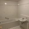 Im Bad sind der Fußboden und die Wände gefliest.