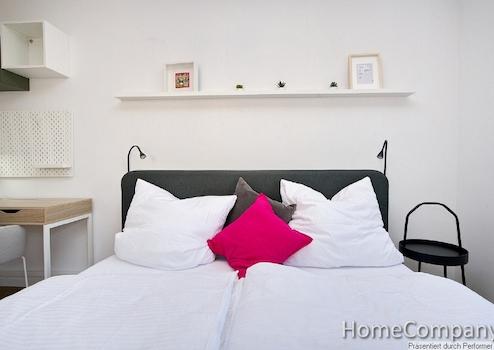 Erstbezug! Das Apartment ist perfekt ausgestattet und bietet Ihnen viel Komfort. Die Wohnküche ist mit einer hochwertigen Einbauküche inklusive Backofen, Cerankochzone, Spülmaschine, Kühlschrank, Wasserkocher und einer Nespresso Kaffeemaschine ausgestattet. Eine Grundausstattung an Geschirr und Kochutensilien ist selbstverständlich auch vorhanden. Ein gemütliches Sofa und ein Esstisch für zwei Personen komplettiert die Wohnküche. Der angrenzende Schlafraum ist mit einem Doppelbett (160 x 200 cm), einem Kleiderschrank und einem Schreibtisch für Ihr Home-Office möbliert. Das Smart-TV ist schwenkbar und natürlich mit dem Internet verbunden. Das Tageslichtbad ist mit einer Wanne inklusive Duschvorrichtung mit Glasabtrennung ausgestattet. Im Keller steht Ihnen eine Waschmaschine zur Mitbenutzung zur Verfügung.