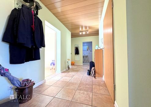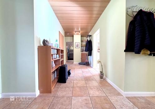 Der Flur und die Küche sind mit pflegeleichten Fliesen ausgestattet, die für eine stilvolle Optik sorgen. In den Wohnräumen, wie dem Wohnzimmer, Büro und Schlafzimmer, wurde hochwertiger Laminatboden verlegt, der für eine angenehme und gemütliche Atmosphäre sorgt.