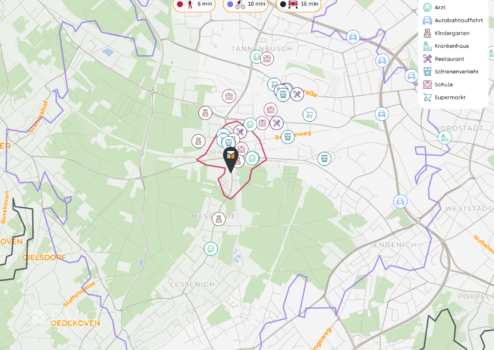 Zusätzlich liegt das Meßdorfer Feld nur ca. 150 Meter entfernt. Dieses weitläufige Naherholungsgebiet bietet viel Natur und zahlreiche Spaziermöglichkeiten direkt vor der Haustür – ideal für Naturliebhaber, Jogger oder einfach entspannte Auszeiten im Grünen.
