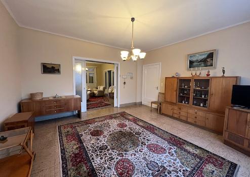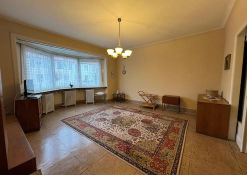 Im Erdgeschoss des 1965 sanierten Altbaus befinden sich drei durch große Fenster lichtdurchflutete Räume: Ess-, Herren- sowie Wohnzimmer mit Erker. Die Räume sind durch innenliegende mit Glaseinsätzen versehene Holzschiebetüren trennbar. Großzügig hohe Decken verleihen ein Wohlfühlambiente. Vom ehemaligen Herrenzimmer gelangen Sie direkt in den gepflegten Garten