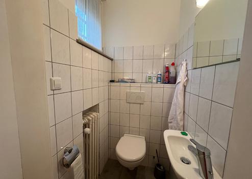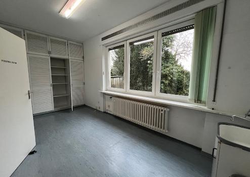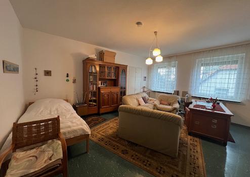 Im 1960 erstellten Anbau befindet sich im EG die ehemalige Arztpraxis mit sechs Räumen, die unterschiedlich genutzt werden können, da in fast allen ein Waschbecken verfügbar ist. Ein WC ist ebenfalls vorhanden