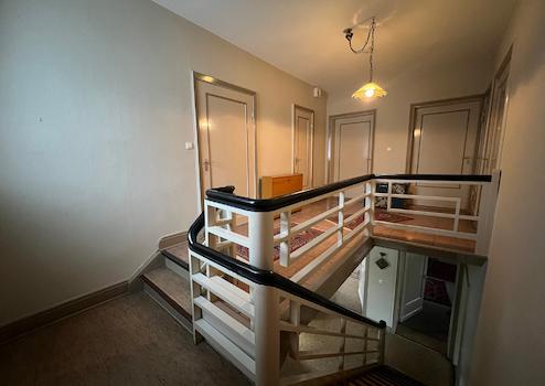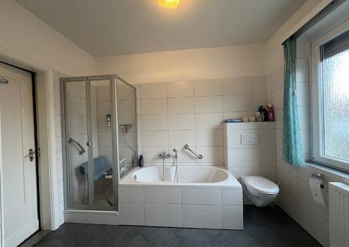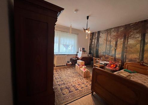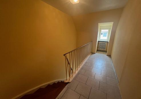 Die repräsentativ breite Holztreppe führt ins Obergeschoss mit insgesamt vier Schlafzimmern, teilweise mit Waschbecken, Nischen und Wand- oder Einbauschränken, einem Badezimmer mit Dusche & Badewanne (in 2014 erneuert) als auch der Aufgang zum Dachboden. Dieser ist nicht ausgebaut, beherbergt aber eine süße mit Dachbodenkammer einer ca. 200 m² großen Grundfläche.