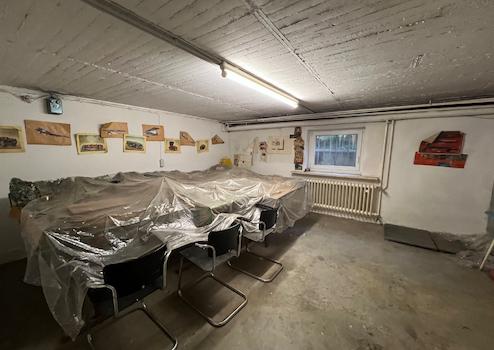 Die ebenfalls im Keller befindliche ca. 42 m² großen Tiefgarage hat Platz für mindestens zwei PKW.