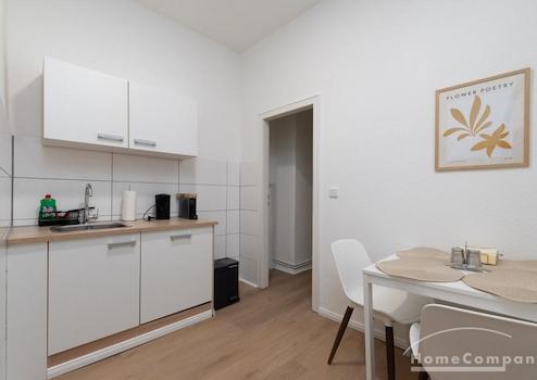 2 Zi.Whg., möbliert, 2. OG, komplett ausgestattet. Offene Küche mit anschließendem Wohn-/Esszimmer. Bad mit Wanne (auch als Dusche zu nutzen). Garten / Hinterhof zur gemeinschaftlichen Nutzung.