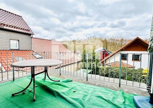 An diesen schließt sich ein großer Balkon/Dachterrasse mit herrlichem Fernblick in das angrenzende Landschaftsidyll.