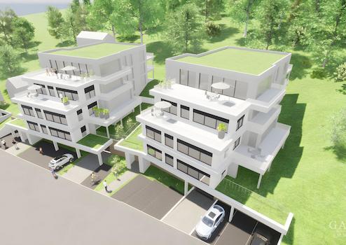 Ein geologisches Gutachten bestätigt, dass trotz der Hanglage eine Bebauung ohne Verbau möglich ist. Die geplante Bebauung sieht ein modernes, barrierearmes Mehrfamilienhaus mit Flachdach vor, welches elf hochwertige Wohneinheiten sowie eine Tiefgarage umfasst.