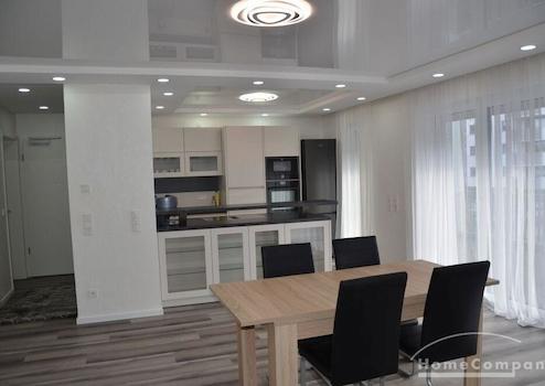 3 Zi. Wohnung, 2. OG, hochwertig möbliert und ausgestattet, barrierefreie Wohnung mit Aufzug von der Tiefgarage bis zur Wohnung Erstbezug nach Sanierung, Spanndecken mir eingebauter Beleuchtung, Fußbodenheizung . Großes Wohn/Esszimmer mit offenener Einbauküche mit Zugang zur großen Terrasse (28 qm). Hochwertiges Laminat, das dritte Zimmer ist als Besucherzimmer oder Kinderzimmer nutzbar. 2 x sep. Abstellraum, sep. Fahrradraum. Miete 2000,-ä€ zzgl. ca. 320,-€ NK/Verbrauchsekostenvorauszahlung. NK bei 3 Personen eventuell etwas höher. Energiekosten werden nach Verbrauch abgerechnet. Angaben zum Energieausweis nach § 16a EnEV 2014: Energieausweis liegt seitens des Vermieters noch nicht vor, ist in Erstellung.