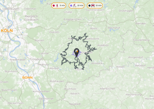 Die Anbindung an den öffentlichen Nahverkehr ist durch mehrere Bushaltestellen in der Nähe gewährleistet, die nächste befindet sich ca. 560 Meter entfernt. Für Reisen in andere Städte oder ins Ausland ist der nächstgelegene internationale Flughafen Köln/Bonn in ca. 50 Kilometern erreichbar. Die Autobahn A3 ist ebenfalls gut erreichbar und bietet eine schnelle Verbindung zu den umliegenden Städten.