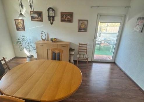 Gegenüber das helle Eßzimmer, das gleichzeitig den Zugang zum Wintergarten bietet und von da aus in den Garten führt.