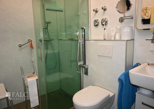 Das Badezimmer wurde im Jahr 2022 komplett neu saniert mit neuen Bademöbel, neuer Wandverkleidung und einer begehbaren Dusche mit Glasfront umgebaut.