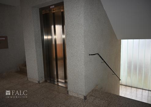 Treppenhaus mit Aufzug, Trockenraum für die Wäsche, Fahrradraum, Garten für die Allgemeinheit, 5-geschossiges Wohnhaus mit Ladentrakt ( Apotheke, Beautysalon)
