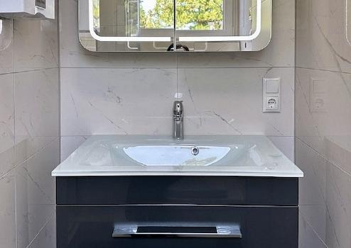Die Wohnung wurde in Oktober 2023 komplett saniert mit neuen Badzimmer, Fenster mit 3-fach-Verglasung und elektrischen Rollladen, Fußbodenheizung mit digitalem Thermostat. Die Wohnküche ist mit einer modernen Einbauküche mit Marken-Elektrogeräten wie Backofen, Cerankochfeld, Spülmaschine und Kühlschrank sowie einem Esstsich ausgestattet. Das separate Schlafzimmer ist mit einem hochwertigen Boxspringbett, Klkeiderschrank und Kommode möbliert. Die Fußbodenheizung sorgt in der gesamten Wohnung für wohlige Wärme. Im Keller stehen eine Waschmaschine und ein Trockner zur Verfügung.