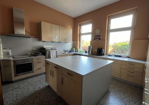 Neben zwei großen Küchen und einem überaus großzügigen Wohnbereich stehen im Haus zwei Bäder, ein Gäste-WC und insgesamt 12 Schlafräume zur Verfügung. Abstellfläche befindet sich im Keller oder in der Ausbaureserve unterm Dach.
