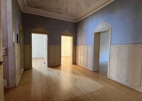 Ein Haus mit viel Geschichte und Stil: ca. 377 m² Wohnfläche verteilt auf drei Etagen. Verschiedenste Nutzungsmöglichkeiten sind denkbar: Ein Büro im EG und darüber eine großzügige Wohneinheit oder als Mehrgenerationenhaus für bis zu drei Familien. Durch die Lage des Treppenhauses ist die absolute Teilung der Einheiten eher schwierig, eine Fremdvermietung bietet sich daher nicht an.