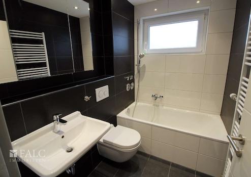Hier zu erwähnen ist das neuwertige Badezimmer. Die Fußböden sind mit Laminat, und Bodenfliesen ausgelegt. Die Fenster sind aus Kunststoff mit 3-Fach Isolierverglasung.
