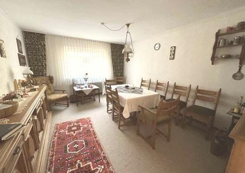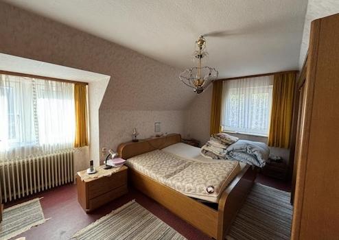 Das Haus verfügt über insgesamt sechs Zimmer, darunter vier Schlafzimmer und zwei Badezimmer. Die Räumlichkeiten sind großzügig gestaltet und bieten viel Raum für Entfaltung und Kreativität. Der Keller bietet zusätzlichen Stauraum. Die Öl-Heizung ist bereits älter. Der Käufer sollte eine Erneuerung der Heizung in seinem Sanierungsplan mit einkalkulieren. Das Grundstück bietet neben einer großen Hoffläche im hinteren Bereich des Gartens weiteres Potential, um seine Gartenträume zu verwirklichen.