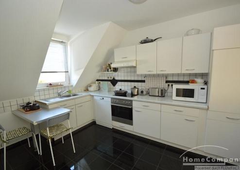 Diese Wohnung geht über 2 Etagen. Im 1. Obergeschoss befindet sich der großzügige Wohnbereich mit dem davor liegenden großen Balkon. Zur vollausgestatteten Küche gibt es eine Durchreiche. In der Küche können auch 2 Personen Frühstücken. Das moderne Badezimmer verfügt über eine große Eckbadewanne und ein BD. Das zweite Zimmer ist wahlweise als Arbeits- oder Gästezimmer zu nutzen, da sich im Schrank ein Klappbett befindet. in der oberen Etage befindet sich das Schlafzimmer und ein weiteres Badezimmer. Die Wohnung ist perfekt für 2 Personen (auch Paar mit Kind).