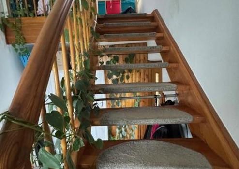 Beim Betreten der Wohnung führt zunächst eine große Außentreppe nach oben. Anschließend gelangen Sie in einen Flur, von dem aus eine weitere Treppe in das Dachgeschoss führt. Dort angekommen, befinden Sie ich im Eingangsbereich der Wohnung.