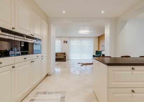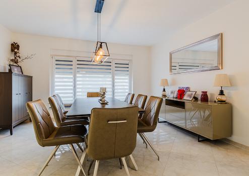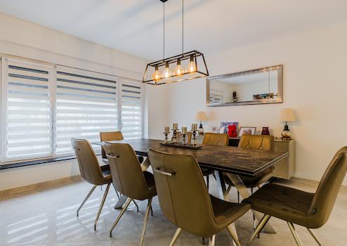 Das Erdgeschoss ist mit hochglänzenden Fliesenböden und Fußbodenheizung ausgestattet (außer Diele/Eingang).