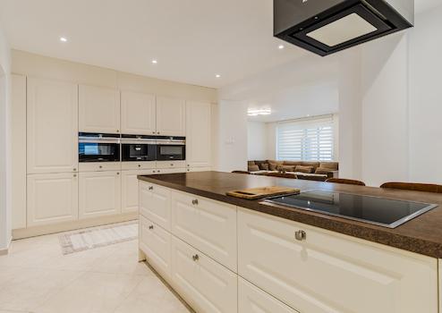 • Exklusive Einbauküche mit Kochinsel.
