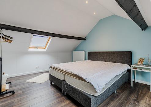 Schlafzimmer mit Dachfenster und Einbauschränken.