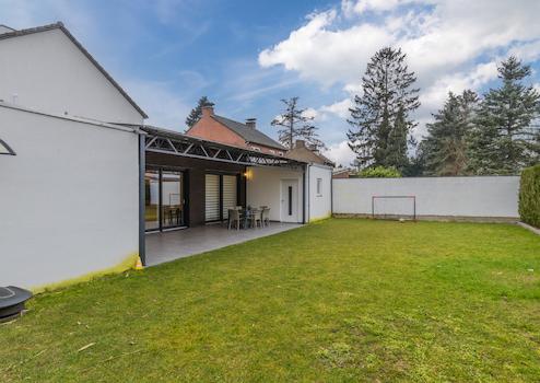 Der großzügige Anbau sorgt für zusätzlichen Wohnraum, und die moderne Küche mit Kochinsel ist ein Traum für jeden Hobbykoch.
