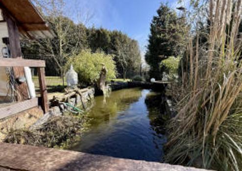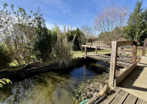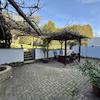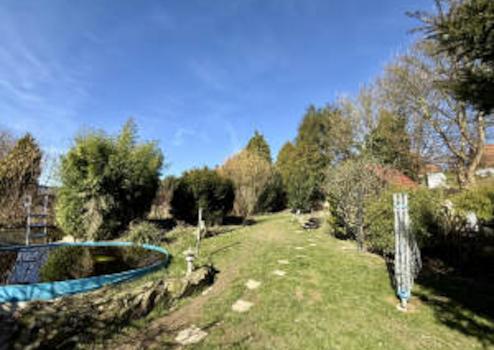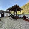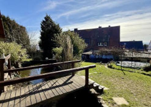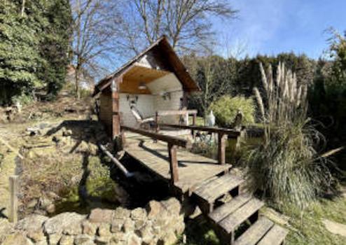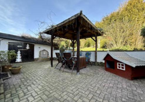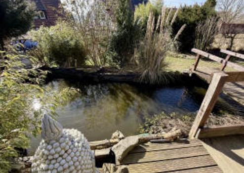oberhalb des Gartenterrains bieten Platz für gesellige Abende im Freien. In dem liebevoll angelegten Garten mit Gartenhaus und Teichanlage