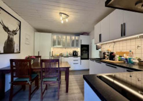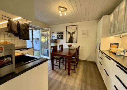 - Gemütliche Wohnküche mit Zugang zur Terrasse und zum Garten