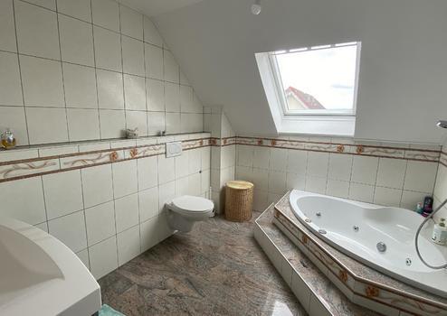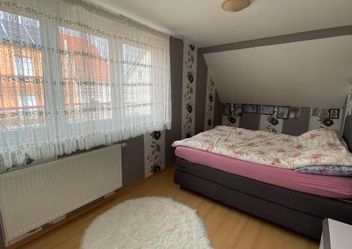 Im Obergeschoss befinden sich drei helle und geräumige Schlafzimmer, eines davon mit Zugang zu einem gemütlichen Balkon. Weiterhin befindet sich ein Badezimmer mit Eckbadewanne und Tageslicht auf dieser Etage.