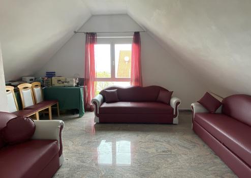 Im Dachgeschoss ist ein zusätzliches großzügiges Zimmer untergebracht. Auch die platzsparende Gasheizung befindet sich auf dieser Ebene.