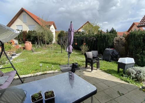 Sie betreten das Haus über den hellen Flur im Erdgeschoss. Von dort aus gelangen Sie in den großzügigen, Licht durchfluteten Wohn-/ Essbereich, der mit Fliesen und Fußbodenheizung ausgestattet ist. Vom Wohnzimmer aus haben Sie Zugang zur Terrasse. Hier haben Sie die Möglichkeit vom Alltag zu entspannen und auch schöne Grillabende mit Freunden zu genießen. Neben dem Essbereich grenzt die moderne Einbauküche, die zahlreiche Auszüge mit viel Stauraum für Ihre Kochutensilien beinhaltet. Im Erdgeschoss befindet sich noch ein Gäste-WC und ein praktischer Abstellraum.