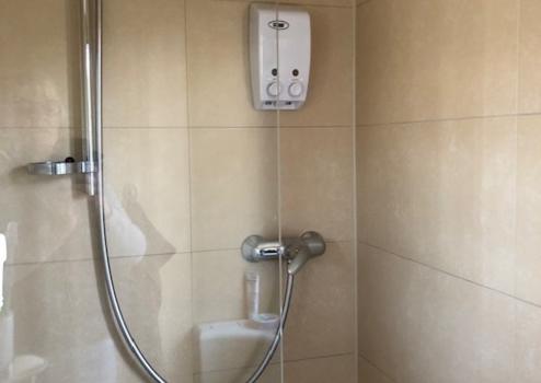 - kleine Einbauküche mit Geschirrspüler, Durchlauferhitzer und Wasserfilter