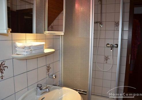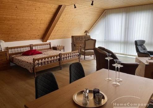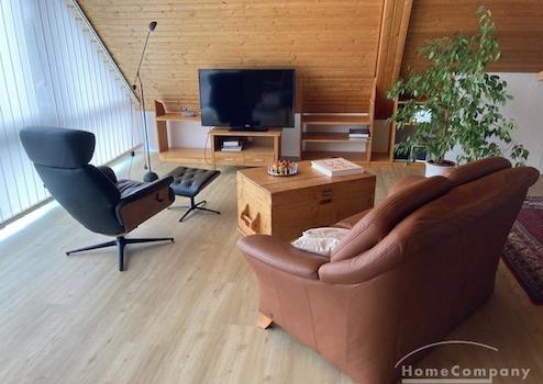 1 Zi.Whg., möbliert, 1. OG (DG) (Atelier-Whg., z.T. elektrische Außenjalousien) in einem 2 Fam.-Haus, Grundfläche größer, große Fensterfront im Wohn-/Schlafraum, gepflegte, frisch sanierte Wohnung (neue Fenster, neue PVC-Planken) in sehr ruhiger Lage. Miete 890,- inkl. Nebenkosten (Hzg., Wasser/Abwasser). Strom ist sep. nach Verbrauch zu zahlen. W-LAN vorhanden (15,- €).