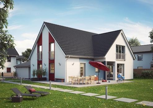 Haus Oslo bietet auch großen Familien unkompliziertes Wohnen mit genügend Freiraum. Durch den Winkel-Grundriss besticht Haustyp Oslo mit einem ansprechenden Wohn-Ess-Bereich. Zahlreiche Fensterelemente gestalten diesen zeitgemäß und freundlich. Modern und familienfreundlich – das ist unser Haustyp Oslo. Durchdacht mit viel Wohnraum, eignet es sich für eine Großfamilie oder für ein Mehrgenerationenhaus. Durch großzügige Fensterflächen auf beiden Ebenen sowie großzügige Grundrisse ist das Haus Oslo weitläufig und hell. Das Satteldach mit einer Dachneigung von 45 Grad, gibt dem Gebäude eine traditionelle und zeitlose Note. Es sorgt nicht nur für eine ansprechende Optik, sondern bietet auch ausreichend Stauraum im Dachboden. Dieser ist bereits im Standard über eine klappbare Einschubtreppe zugänglich. Das Haus fügt sich durch sein klassisches Äußeres harmonisch in seine Umgebung ein und strahlt eine einladende Atmosphäre aus.