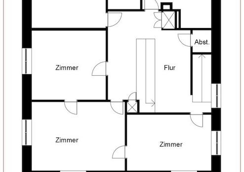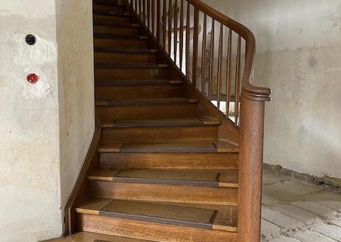 Über die geschwungenen Treppe erreichen Sie das erste Obergeschoss mit Flurbereich und mehreren Zimmern. Vom Flurbereich führt eine Treppe zum ausgebauten Dachgeschoss mit Flur und mehreren Zimmern. Eines dieser Zimmer hat eine originale Holzkonstruktion mit der Möglichkeit eine zweite Ebene (Galerie) anzubringen.