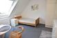 Wohnraum mit Tisch, Sessel, Stuhl, Bett 100x200 cm, Nachttisch, Kleiderschrank,