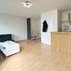 Durch die vorhandene große Nische, die sich ideal als Schlafbereich eignet, lassen sich Wohn- und Schlafbereich gut trennen und zwei große Fenster im Raum sorgen für ein helles und einladendes Wohngefühl. Die offene Küche ist in den Wohnbereich integriert und bietet ausreichend Platz zum Kochen. Das Bad ist ausgestattet mit hellen Fliesen, einer Dusche und einem Anschluss für die Waschmaschine.