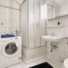 - Badezimmer, hell gefliest mit Dusche und Anschluss für die Waschmaschine