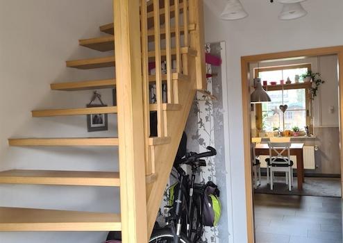 Flur mit Hinterausgang und Treppenaufgang ins ausgebaute, hintere Dachgeschoss.