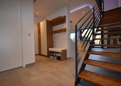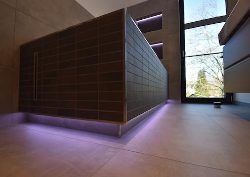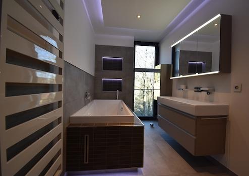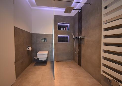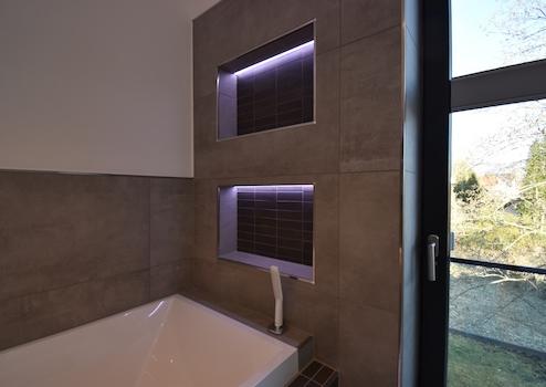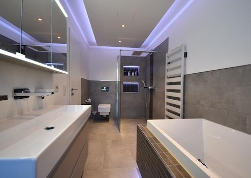 Bäder = teilweise gefliest, glatt gespachtelte Wände,